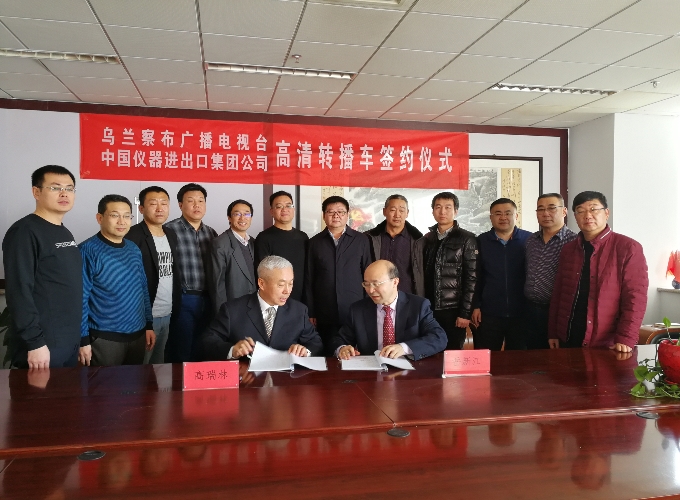 2018年12月11日上午,中国仪器进出口集团有限公司与乌兰察布广播电视台于乌兰察布市广电大楼举行“10+2”高清电视转播车项目合同签约仪式,岳新江副总经理与高瑞林台长分别代表双方在合同书上签字。